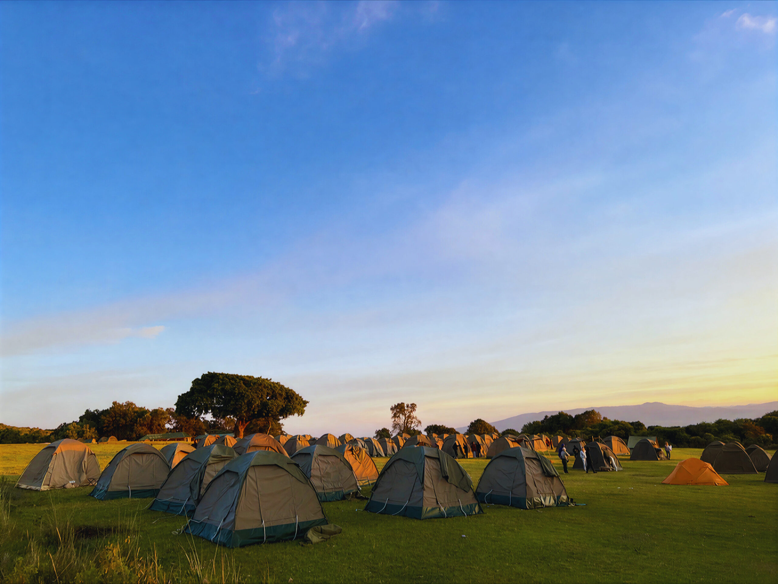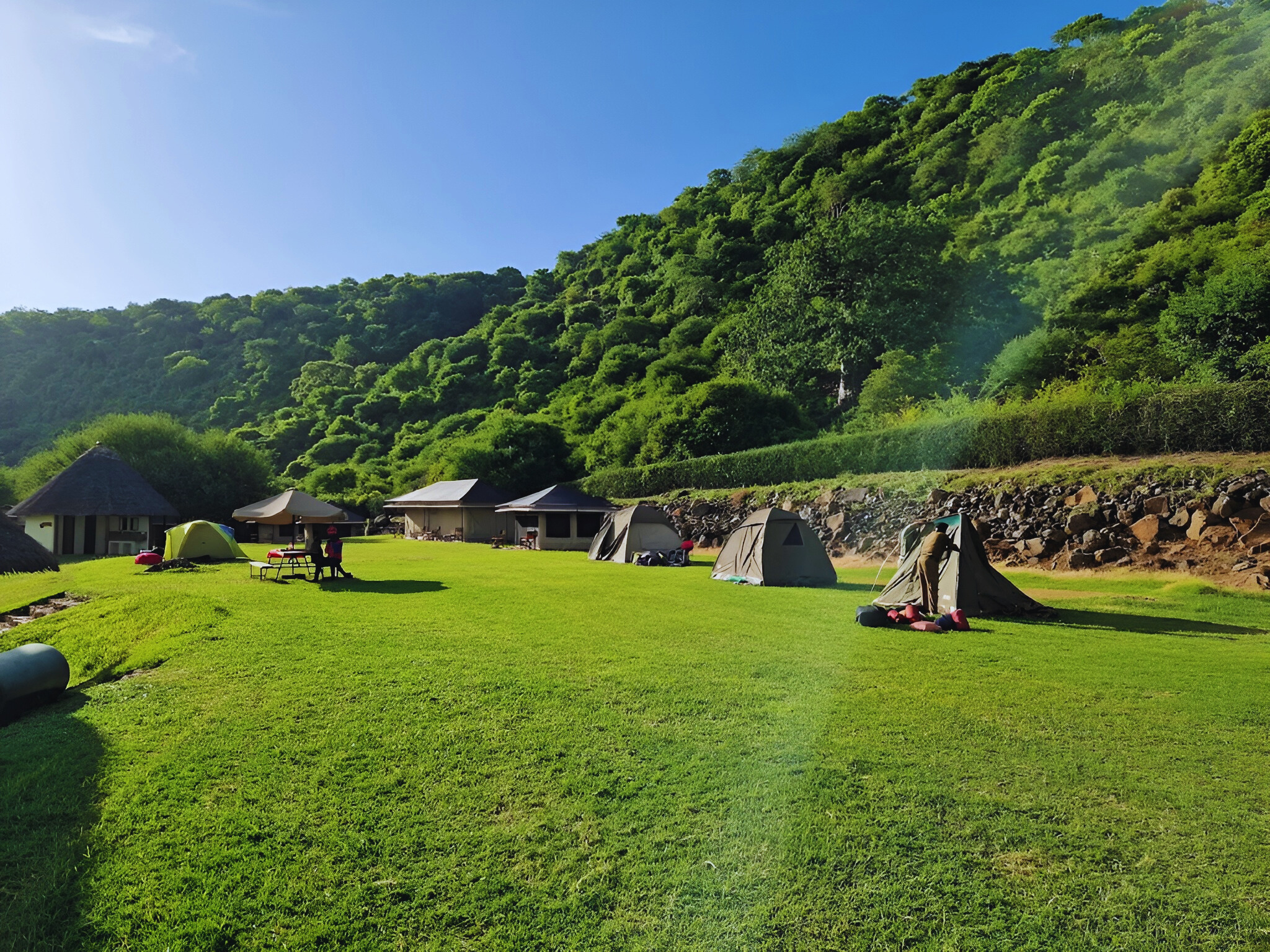 This change in scenery is one of the most striking visual contrasts of the journey, with the expansive plains gradually rising into forested slopes and cooler air at higher elevation. You reach the crater rim by late afternoon, with broad views and a peaceful atmosphere perfect for sunset moments shared together. Dinner and overnight are spent at the campsite positioned high above the crater floor.